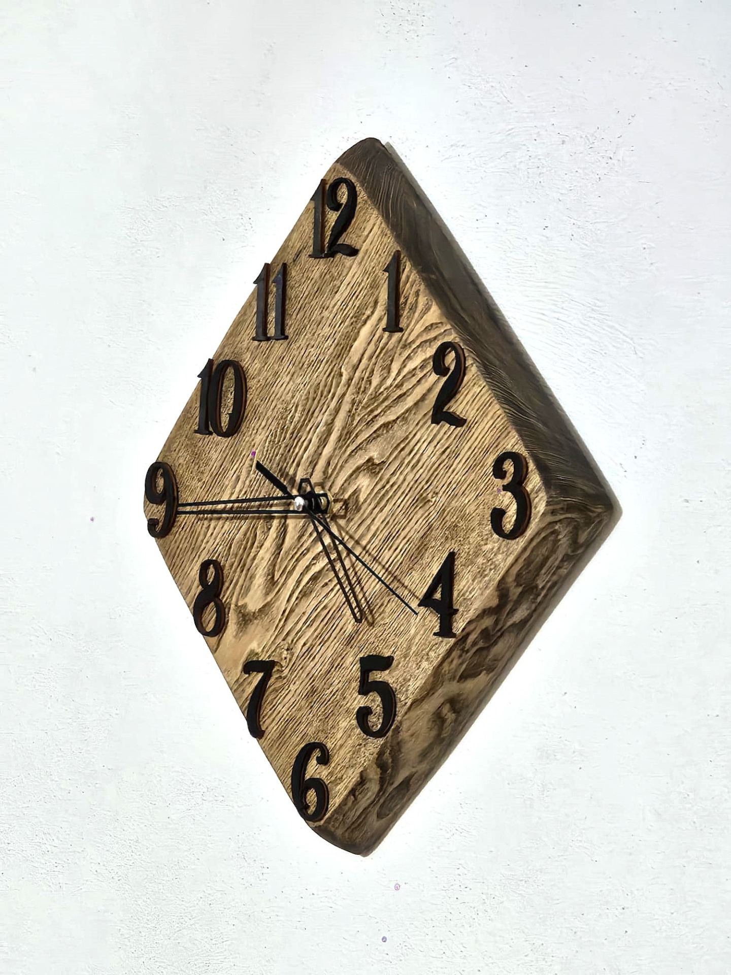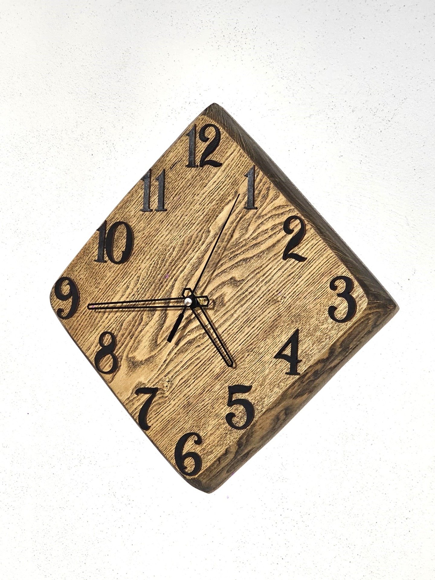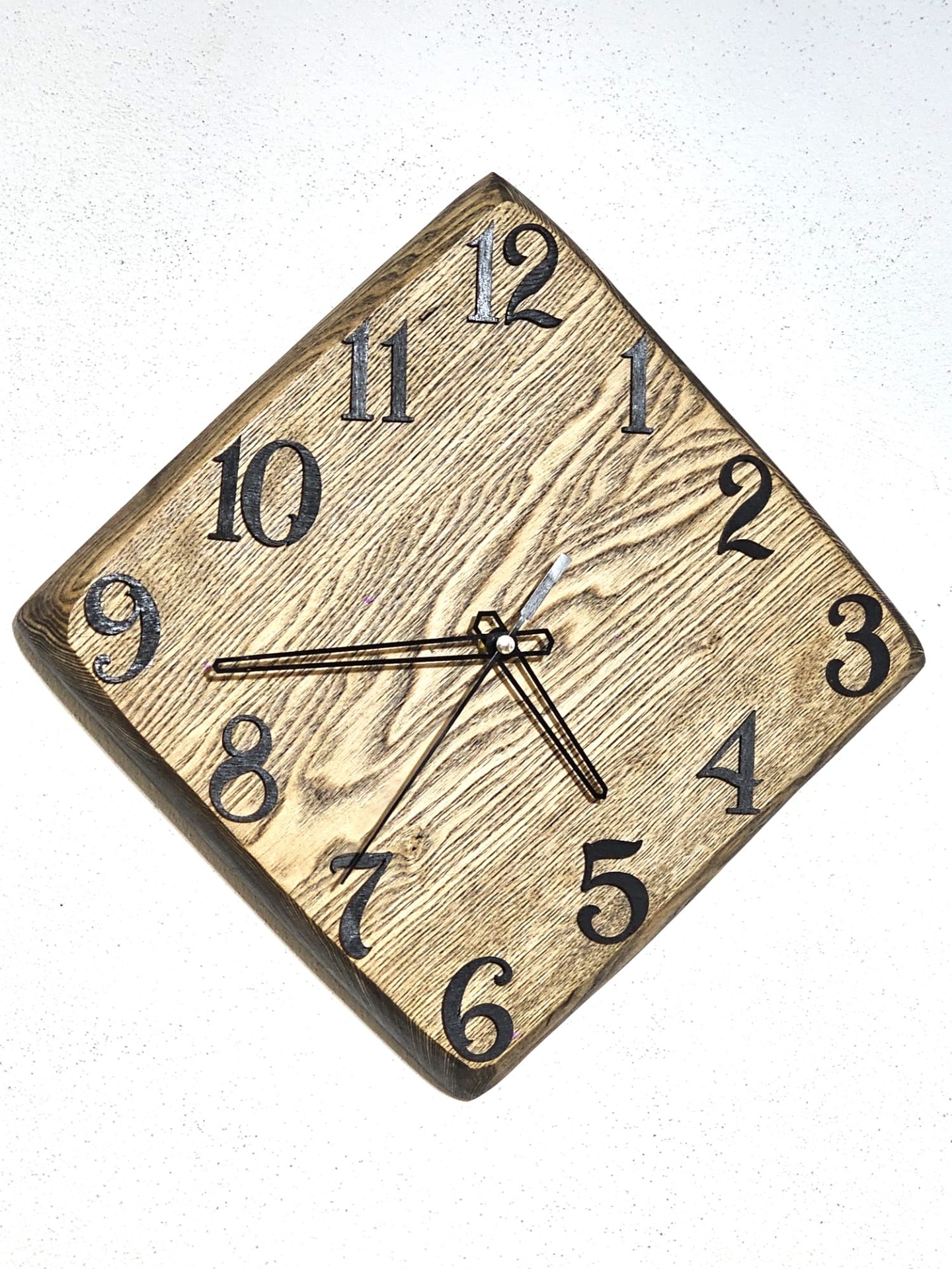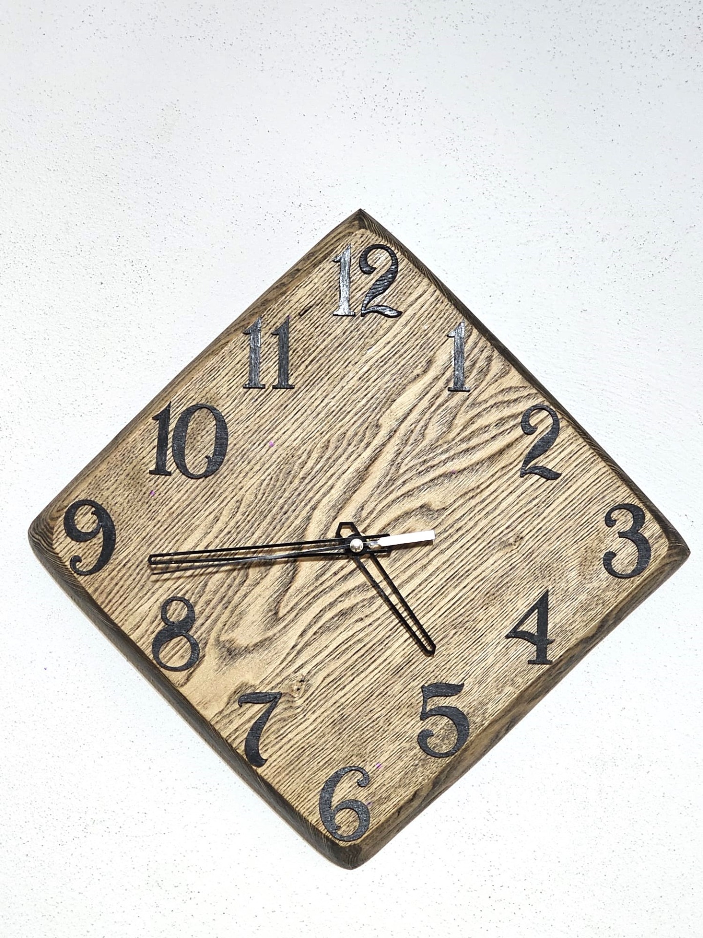 • Pre tento typ drevených hodín na stenu sú prirodzené malé praskliny, nerovnosti, rôzne uzly čo dáva hodinám prirodzenosť a krásu