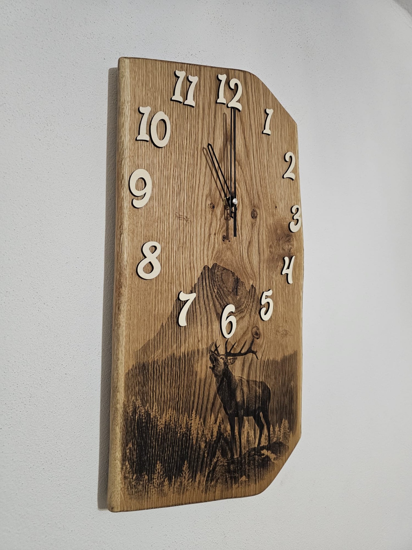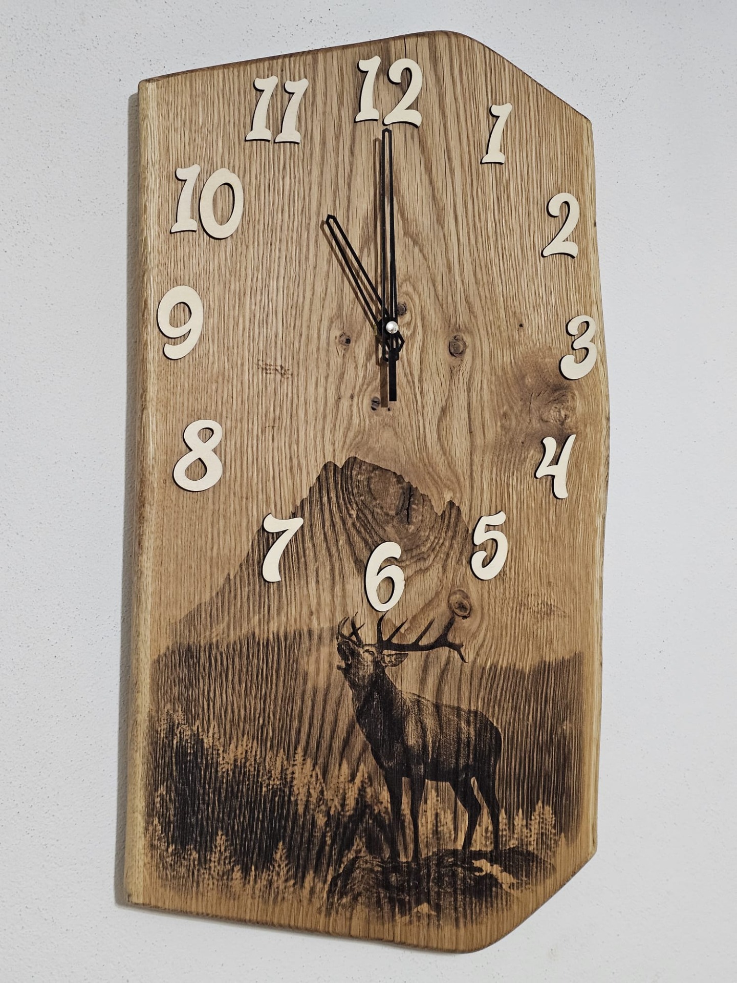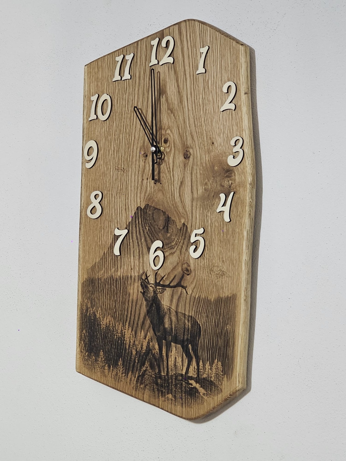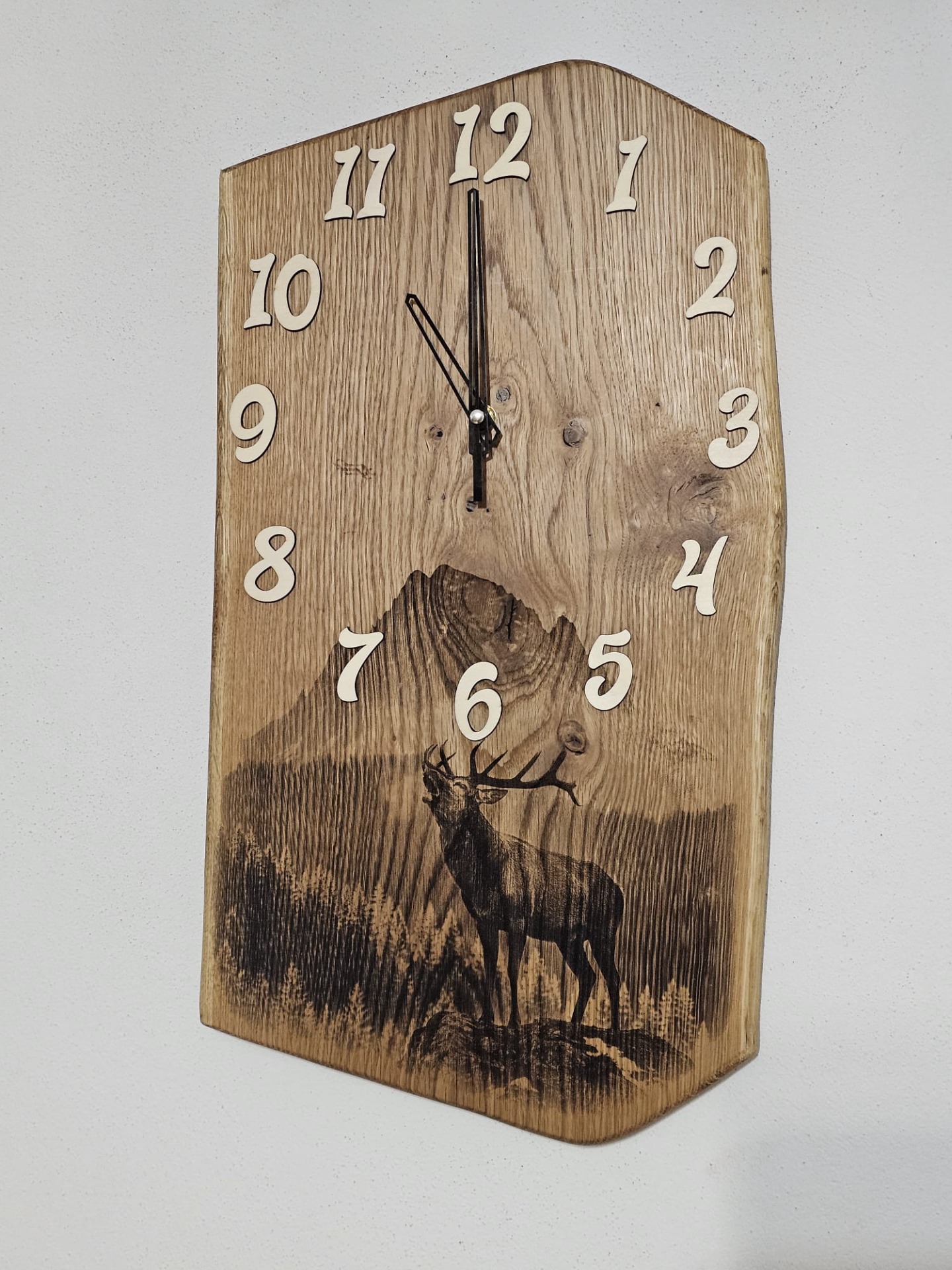 Už vás nebavia sériovo vyrábané doplnky bez duše? Naše ručne vyrábané drevené hodiny na stenu sú stvorené pre tých, ktorí hľadajú originalitu a jedinečnosť. Každé jedny drevené nástenné hodiny sú originálom, s vlastnou kresbou dreva, charakterom a dokonca tieto sú obohatené gravírovaním s motívom Jeleňa a tým pádom môžu poslúžiť ako krásny darček pre poľovníka. Či už preferujete netradičné tvary, zaujímavé kombinácie dreva alebo umelecky spracované detaily, naša ponuka originálnych drevených hodín vás určite zaujme. Objavte kúzlo ručne robených drevených dekorácií a nájdite si tie pravé hodiny, ktoré budú hovoriť za vás.