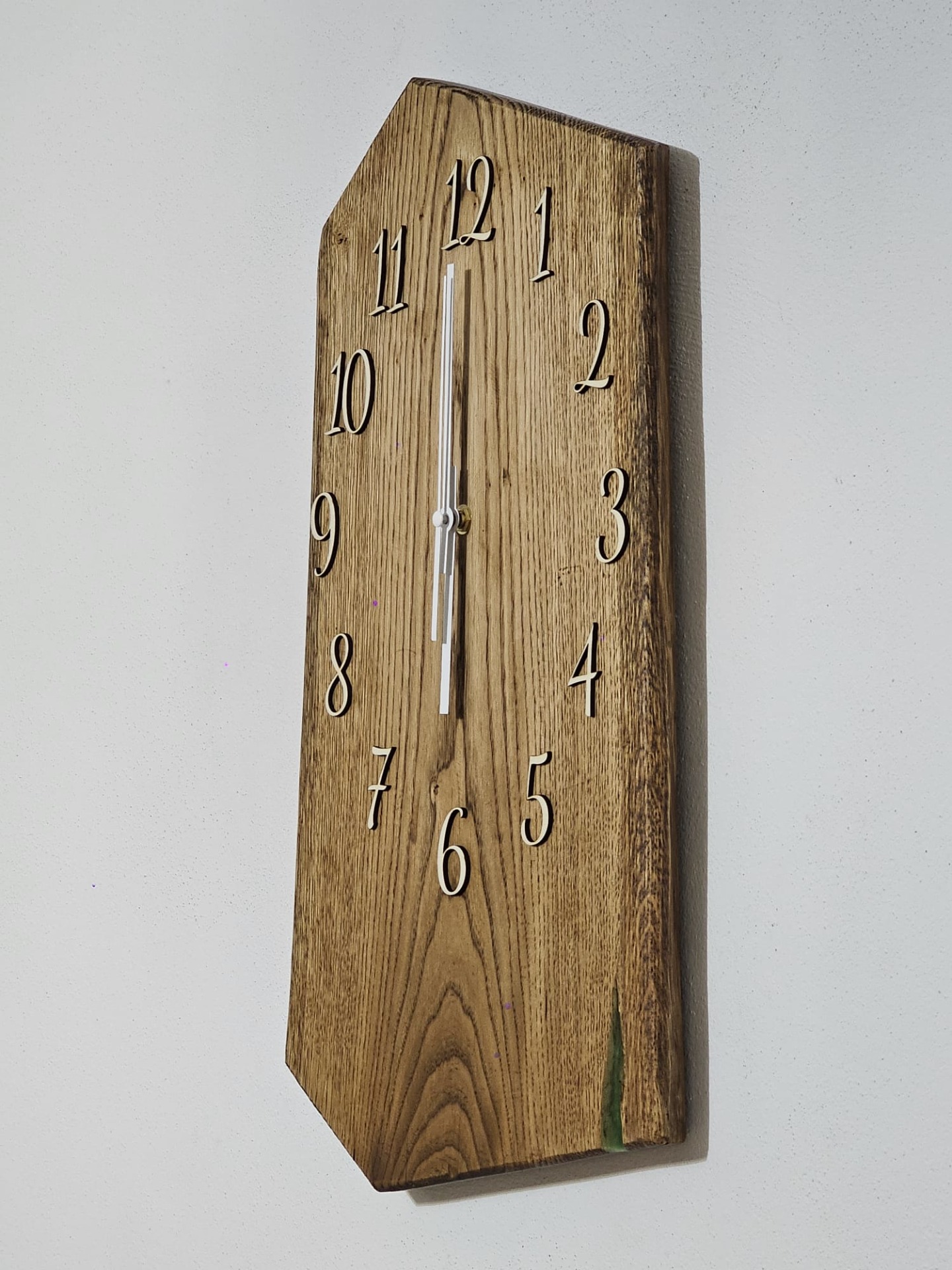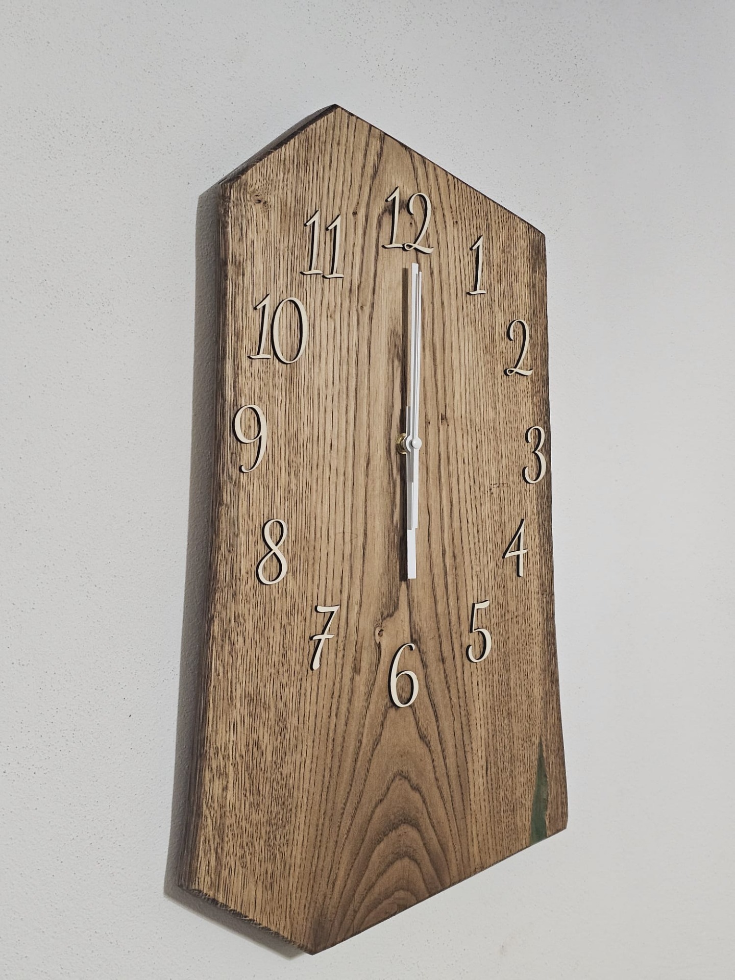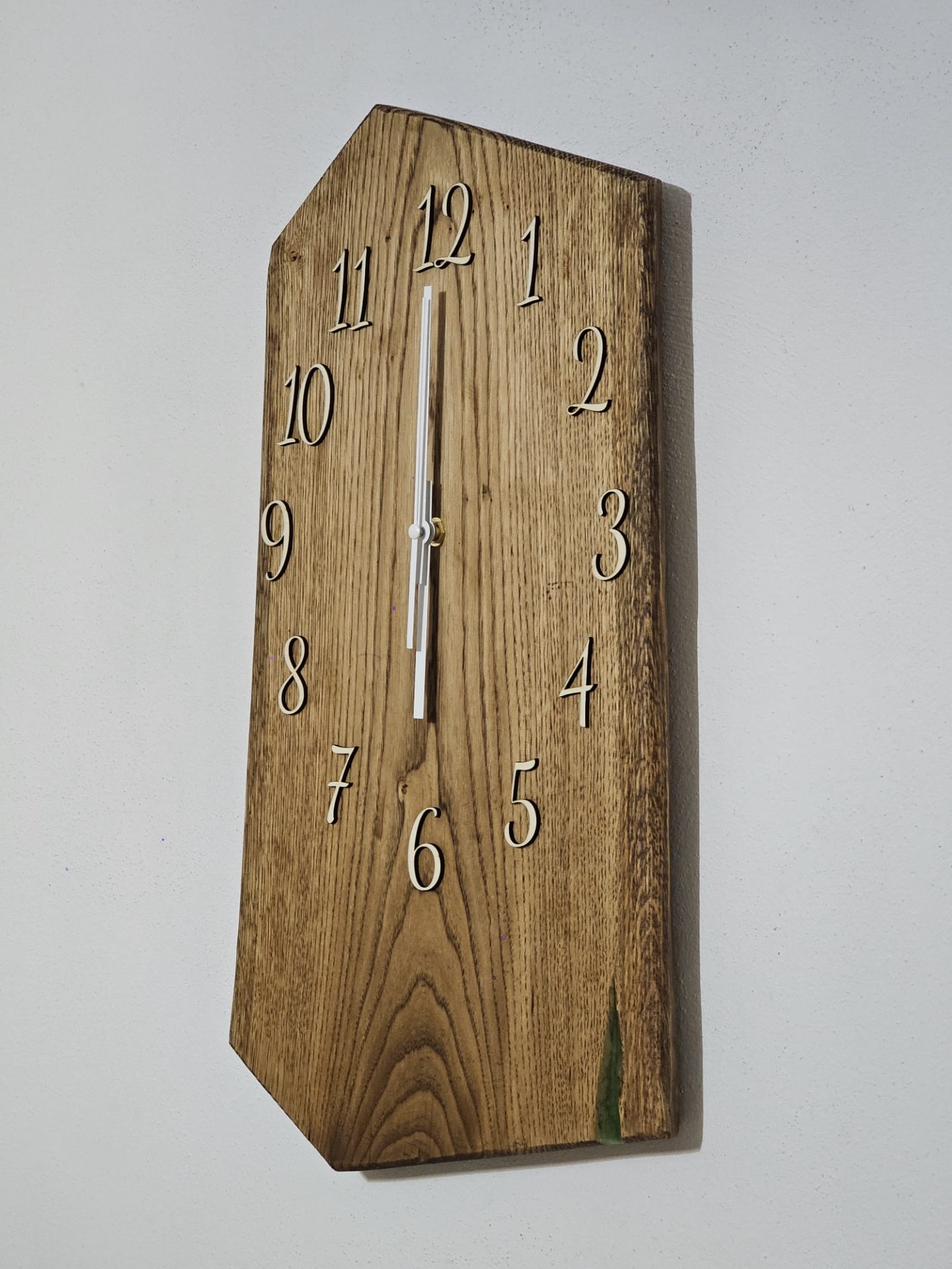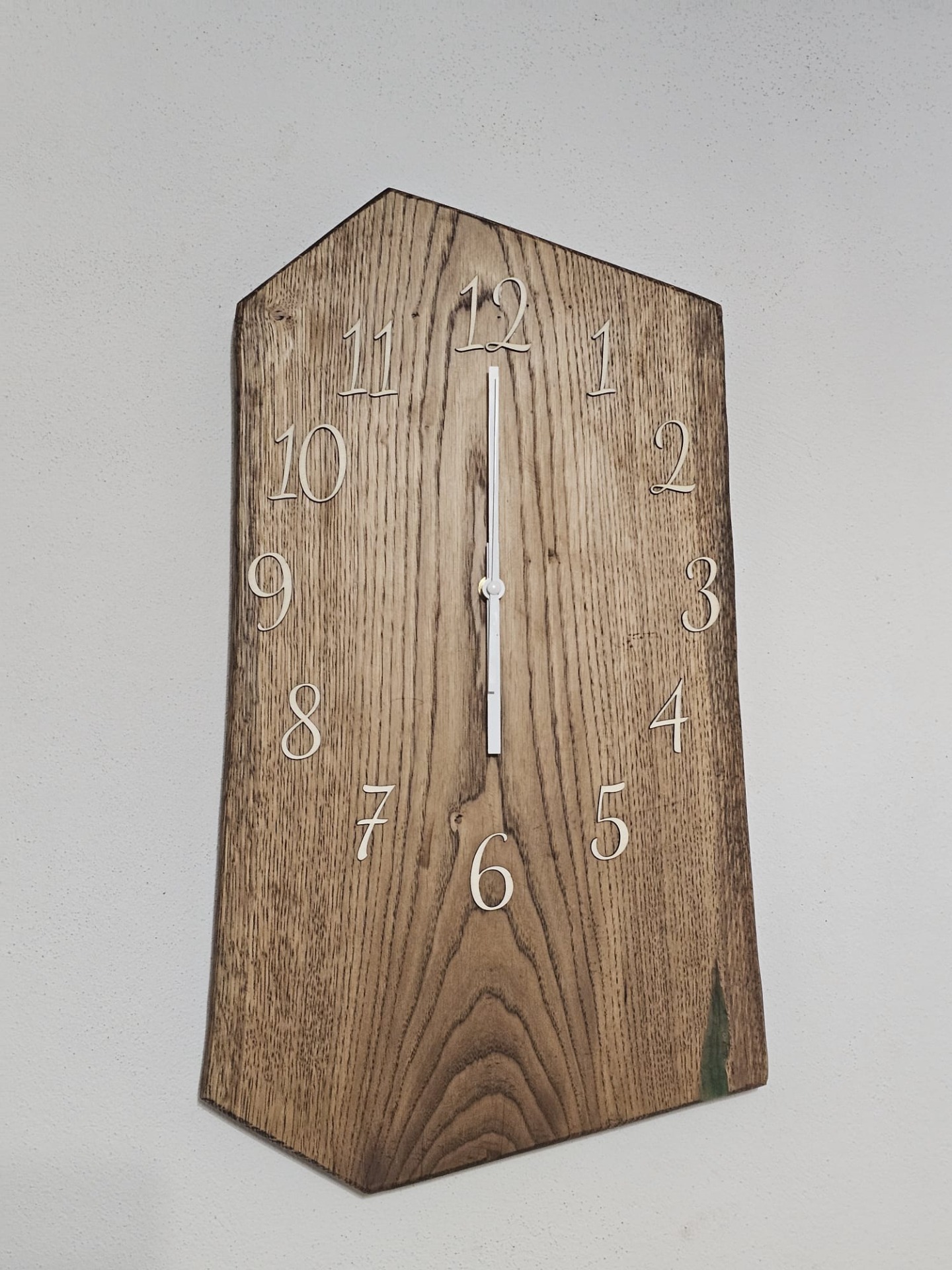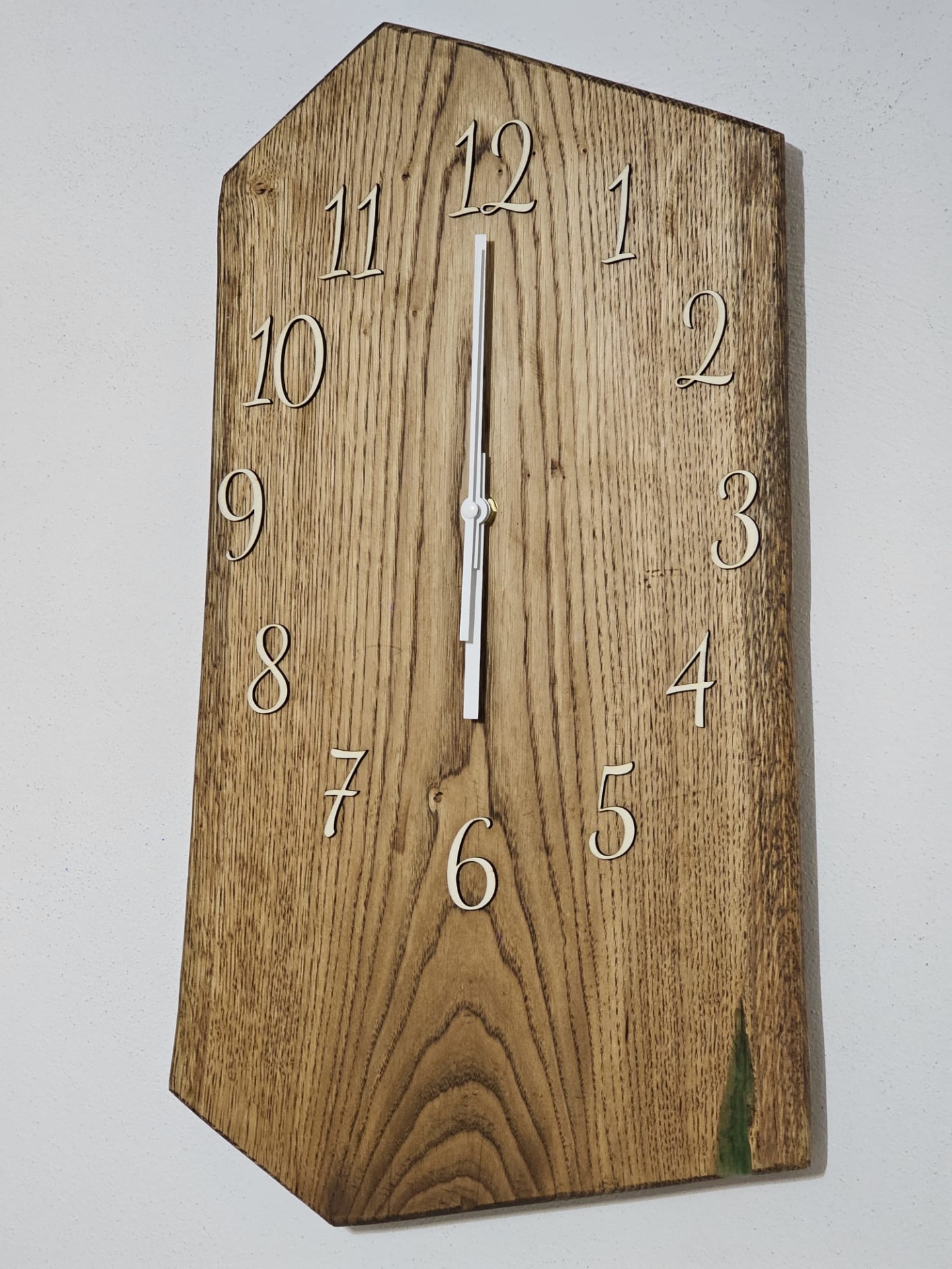 • Pre tento typ drevených hodín sú prirodzené malé praskliny, nerovnosti, rôzne uzly čo dáva hodinám prirodzenosť a krásu